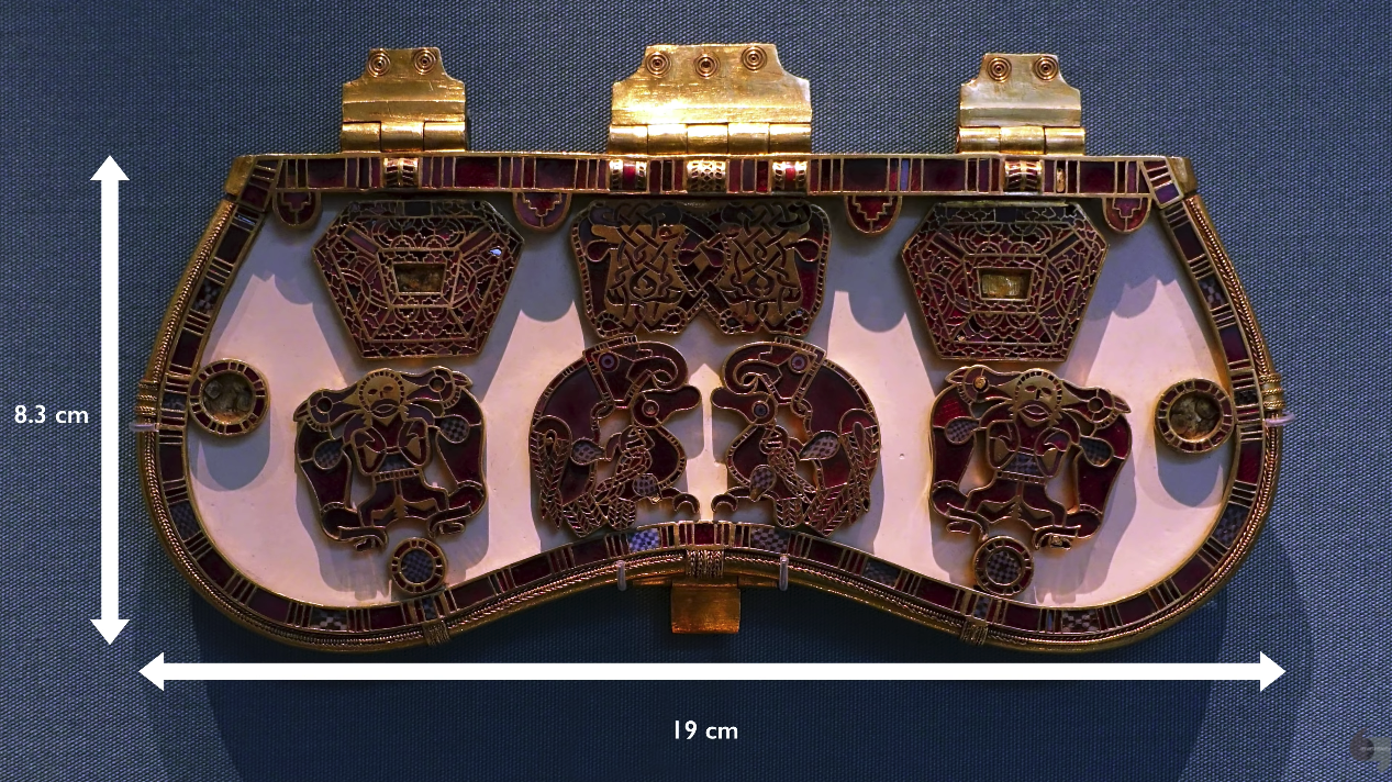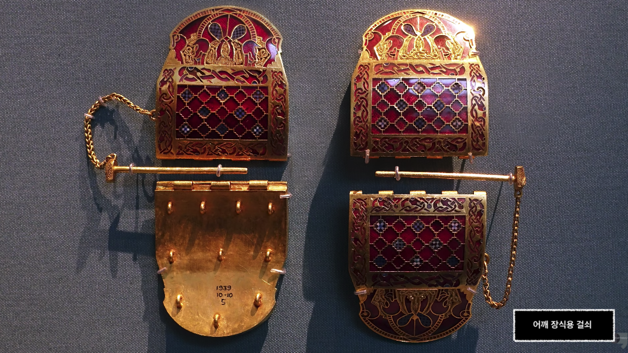 이 장신구 역시 화려하면서 섬세한 문양들로 꾸며져 있으며 황금과 가넷 그리고 유리로 만들어졌습니다.
