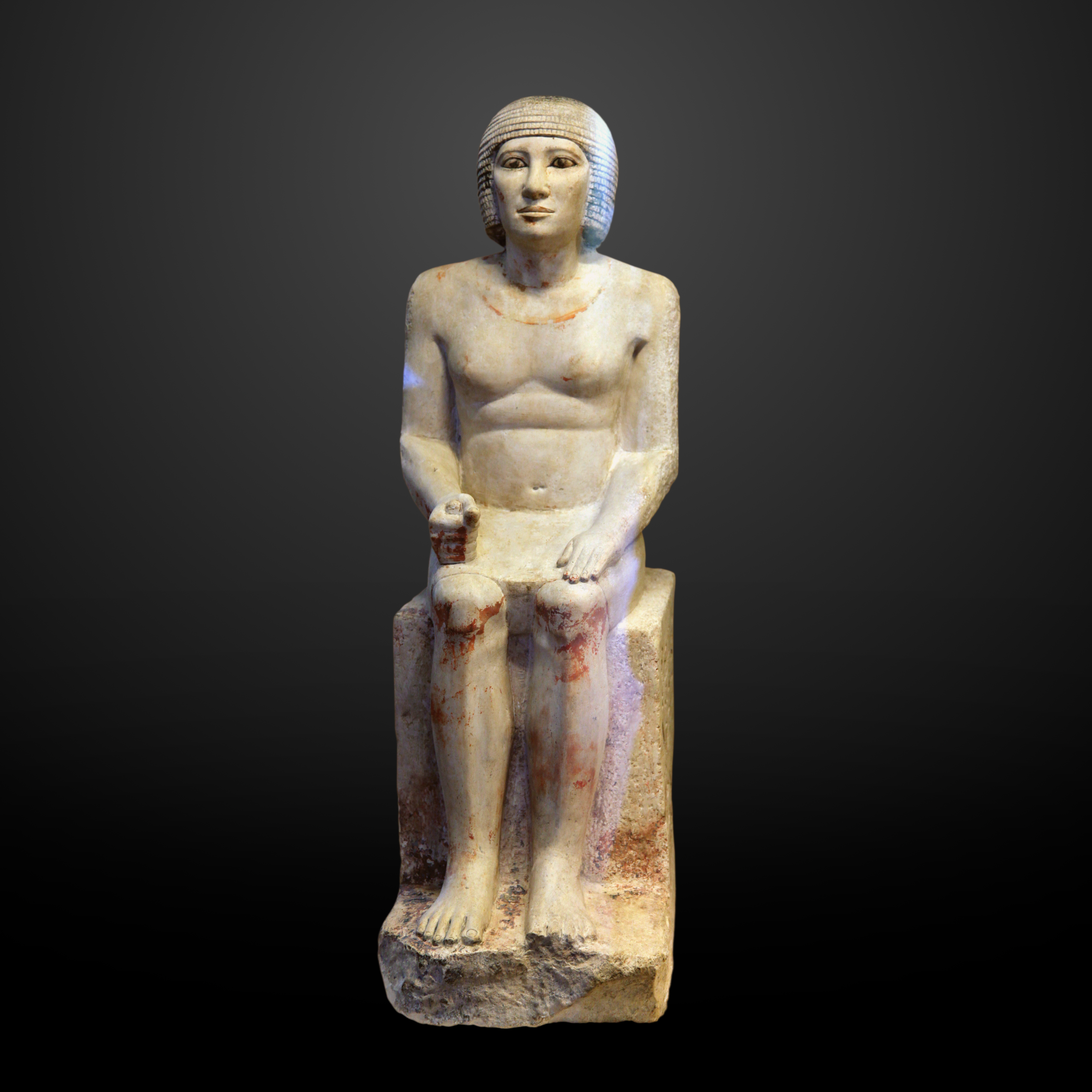아마도 이 조각상은 이름과 직함이 적힌 반원형의 반침대에 놓여있었던걸로 추정이 됩니다. 이 받침대는 없어진 상태로 발견이 되었으며 발견 당시 주변에 이 인물에 대해서 알수있는 어떠한 정황도 발견되지 않았습니다.